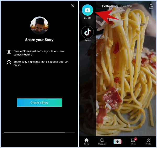 TikTok Stories有专属的相机和使用操作,使用按钮在主屏幕的左侧,这样便于用户查找和创建 Stories,然后进行分享。