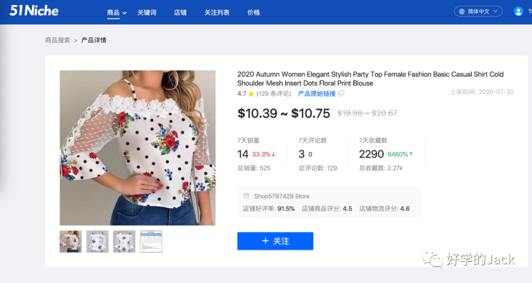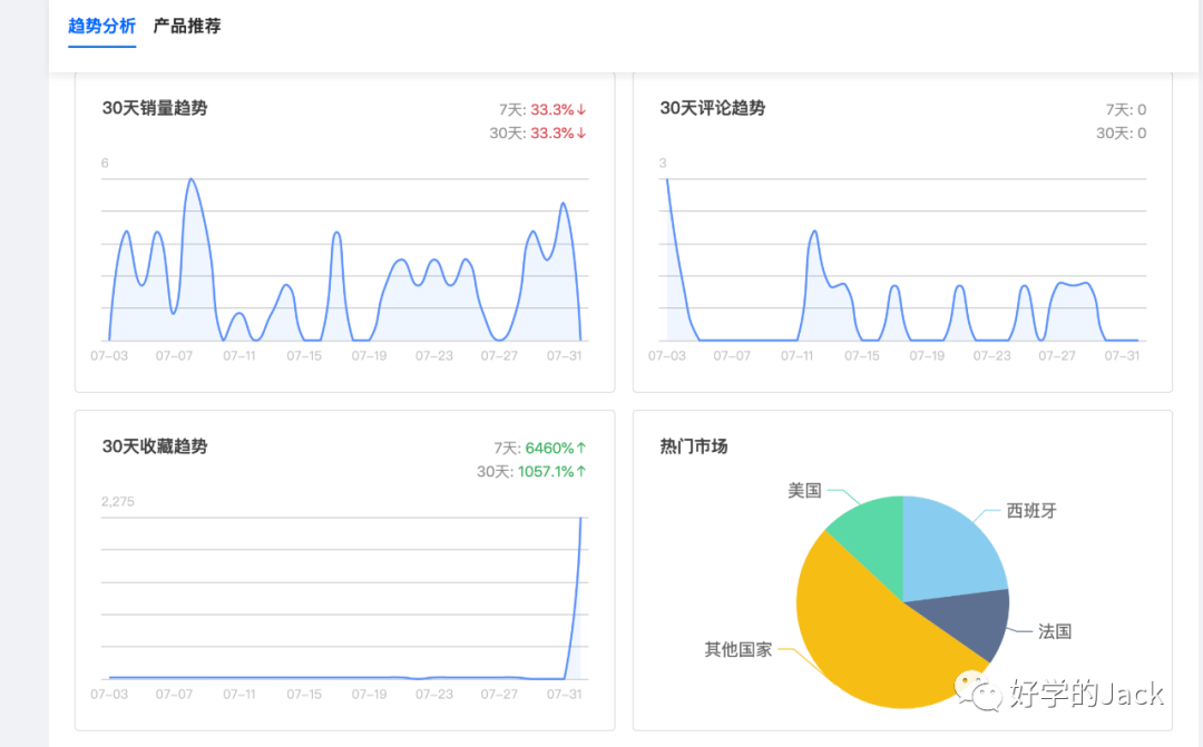 最重要的是能分析30天该商品详细销量、评论数据看商品趋势,还能看到该商品的主营国家,对于卖家选择市场经营和广告投放比较有用。