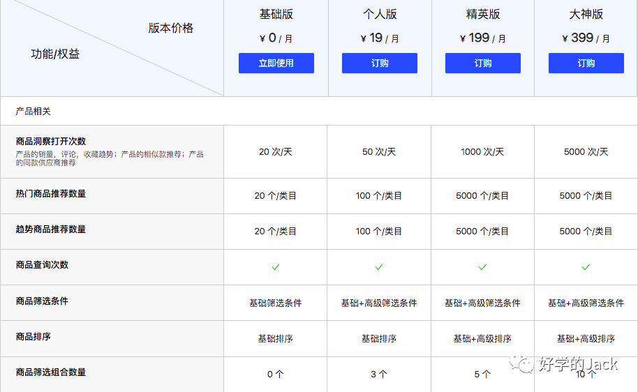 后期你的选品能力上来了,觉得免费版本不够用了,可以选择付费版本。