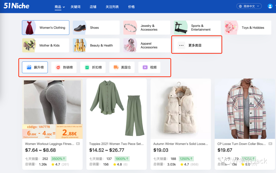 51niche提供了几乎全部电商行业的飙升款、爆款推荐。