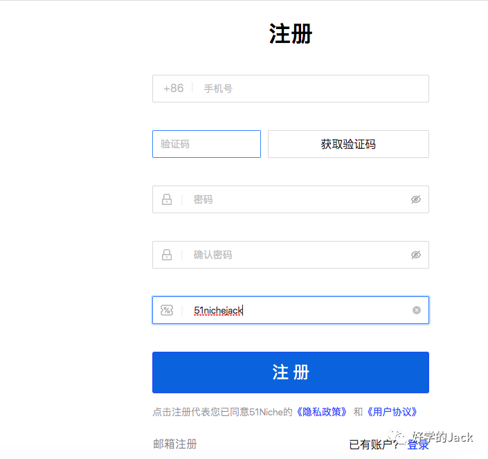 我这边给大家申请了八折的优惠券,点击阅读原文,或者直接进官网:www.51niche.com/signup.html,购买时候输入51nichejack,就可以享受折扣哈。