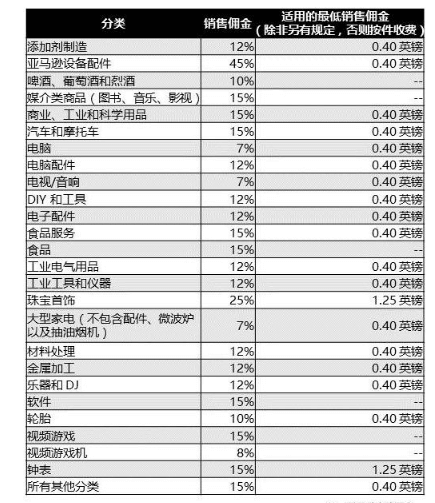 仅需要每月支付月租金25英镑或39欧元,下表是销售佣金以英国为例,详细请参考下表。销售佣金将收取以下两者中的较高者:单价×销售佣金;