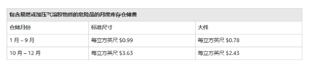 亚马逊会收取按照单独的标准来收取月度仓储费,只针对包含易燃或加压气溶胶物质的危险商品: