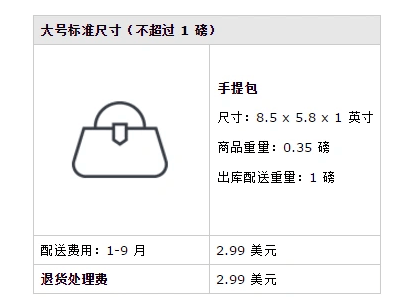 超过上述尺寸的商品属于大件商品。如果商品成套销售,那么亚马逊会计算整套商品包装在一起之后的总体重量和尺寸。