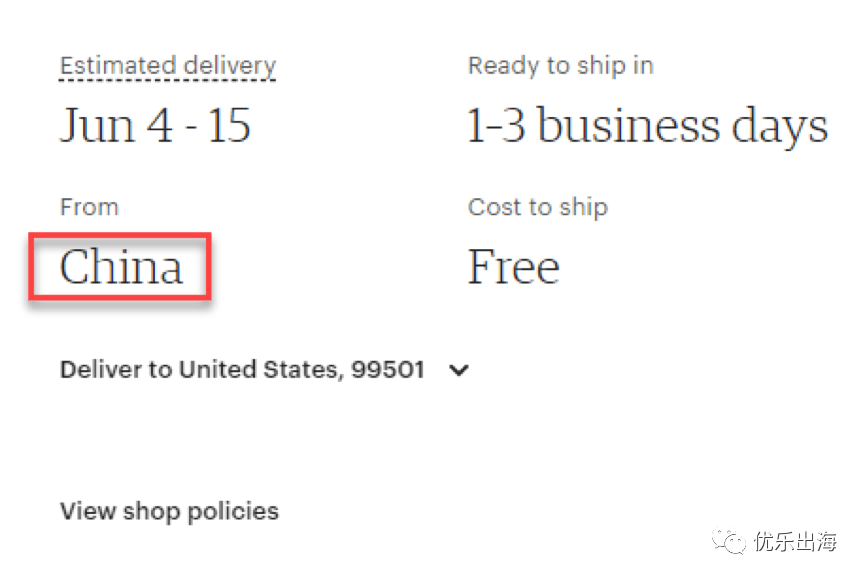 需要注意的是,在Etsy上架litsing的时候,发货地是哪些就写哪些,不要在发货地上欺骗客户。当你写中国的时候,其实也是在给客户一个预期,他需要等3-4周的时间才会收到货。