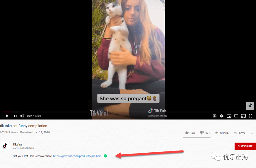 获得免费和精准流量到你店铺的有效免费方式之一就是YouTube视频。如上图所示,这个视频是一个合集视频,汇编了来自tiktok上的猫咪视频。就这样,一个非原创类的合集视频都获得了65万的播放量。