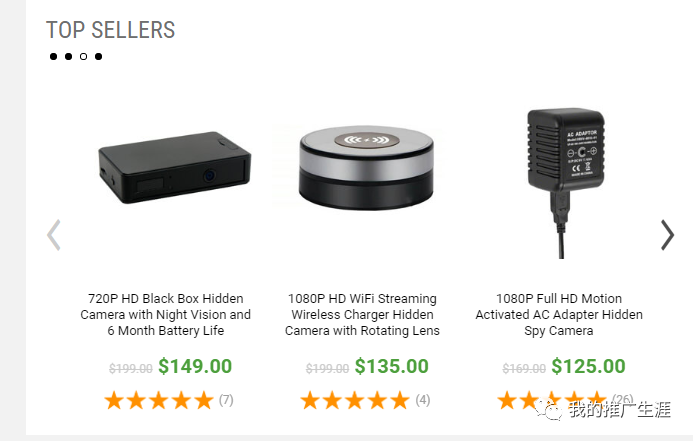 网站引流方式:目前网站的主力引流方式是通过谷歌seo来获取自然流量,网站有好几个关键词,例如:mini spy cameras,hidden car camera等等关键词排名都非常的不错。