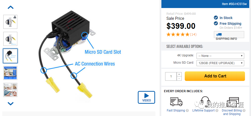 产品二:这款插座式偷拍器,网站售价399美金,我在速卖通上面找到一款类似的,售价才67.75美元,中间的利润也十分的高。