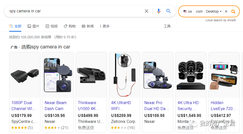 当然如果可以上购物广告的话,那是更好的了, 如下图搜索 spy camera