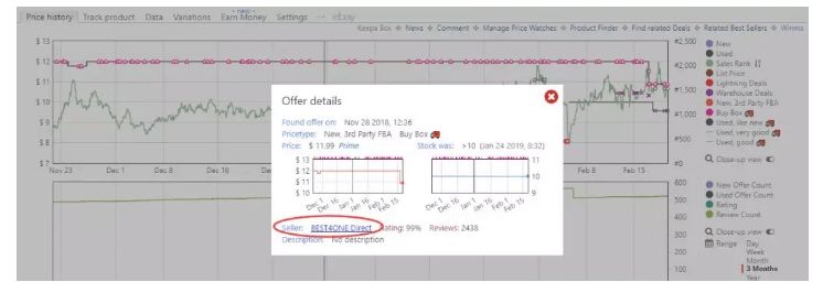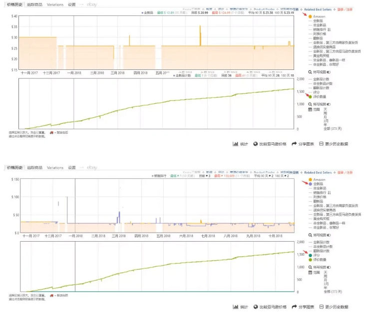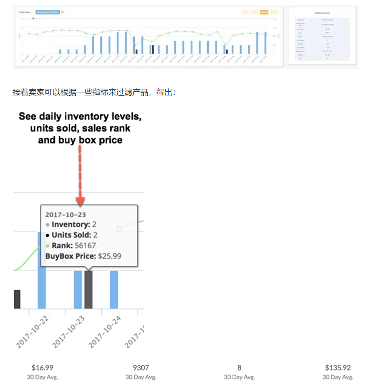 通过产品数据图,卖家可以查看产品热度有没有呈上升趋势,会显示其他卖家是否断货,最近是否更改了价格等,所有这些信息都可以帮助卖家找到最佳的选品策略。