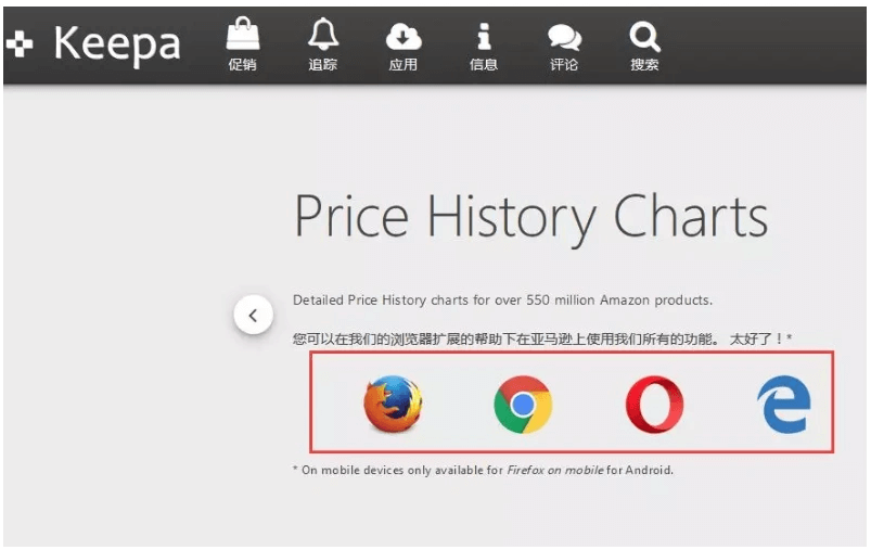 登陆官网:https://keepa.com,在首页选择适合的浏览器,一键安装(比如选择火狐浏览器,点击图标,然后点击“添加到Firefox”,“确定”。)