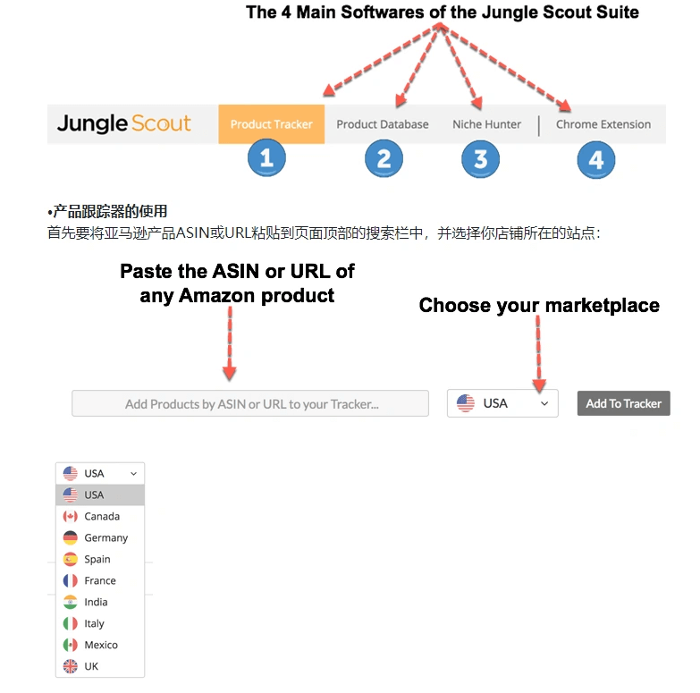· 用户界面可以看到Jungle Scout 4个最主要的套件: