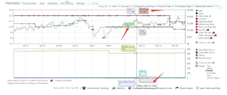 keepa是一款免费的价格追踪工具,它保存了亚马逊上所有产品的价格历史。Keepa同时也是一款分析产品销售情况的工具,卖家可以看读懂竞品和自己的产品的数据,会有更加清晰的认识。