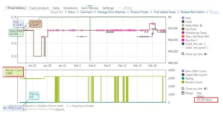 为什么listing review数据出现的时间比产品价格数据还要早?review数据短时间内递增、剧减?举例以下产品:
