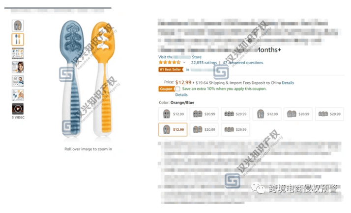 亚马逊热销产品,爆款宝宝辅食勺美国外观专利防侵权预警!