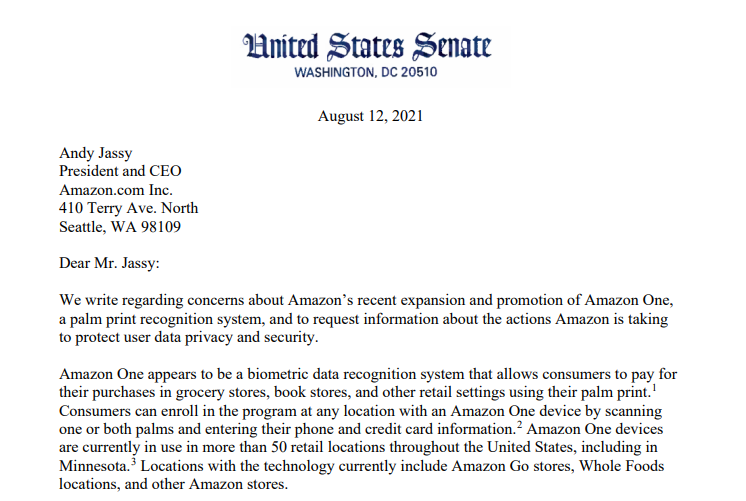 上周,有多名美国参议员联名向亚马逊发出正式信件,针对亚马逊的用户数据安全问题发出质疑,要求亚马逊在8月26日前和有关部门公开有关数据收集和安全实践方面的工作,以及向第三方出售这些技术的信息。