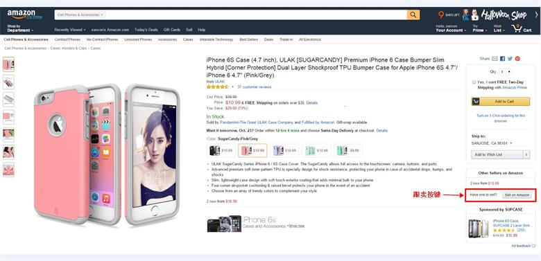 1、找到想跟卖的产品,在其购物车的下方,会有一个“Sell on Amazon”的按钮。点击该按钮,会跳转到卖家的后台页面,之后填写相关的信息就可以了。