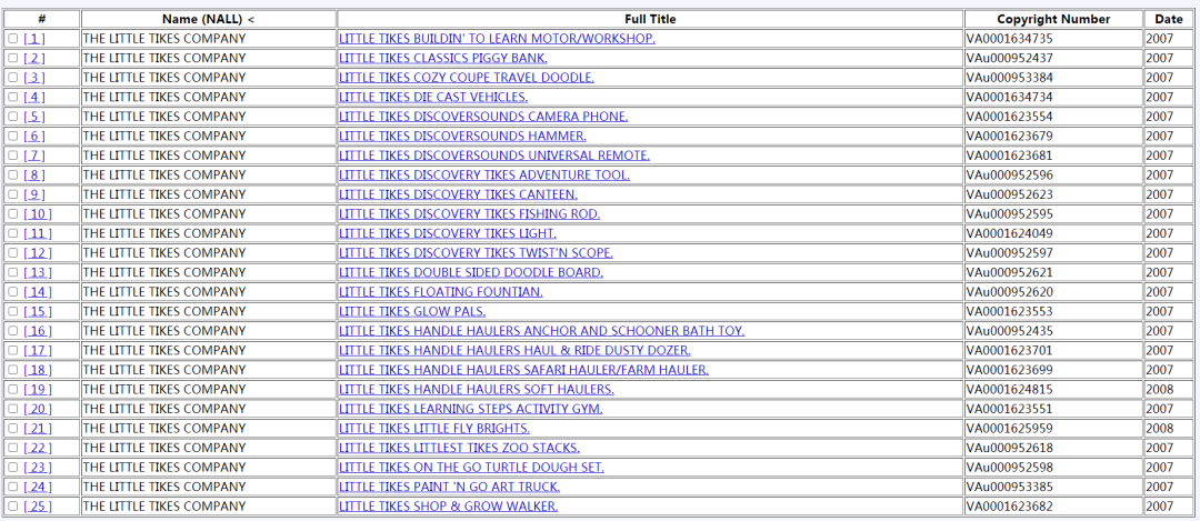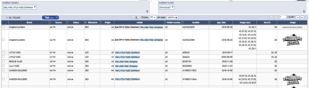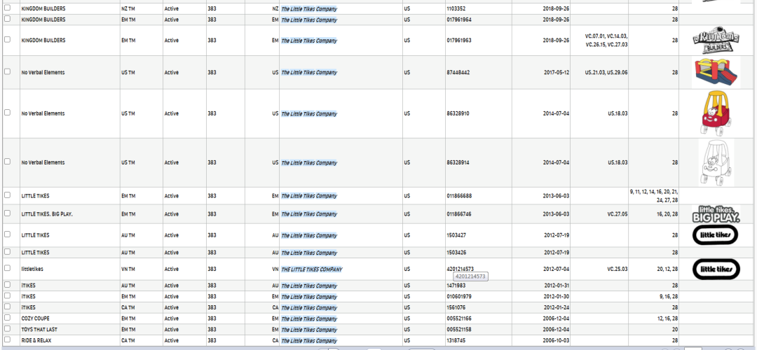 权利人THE LITTLE TIKES COMPANY旗下注册了非常多的商标:(部分如下)