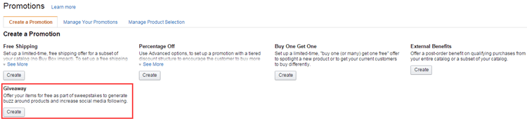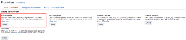 one、Giveaway,这四种促销方式分别为免运费、满减、买一送一、亚马逊抽奖。之前介绍了买一送一和购买折扣的设置流程,那么下面给大家介绍亚马逊抽奖和免运费的设置流程。