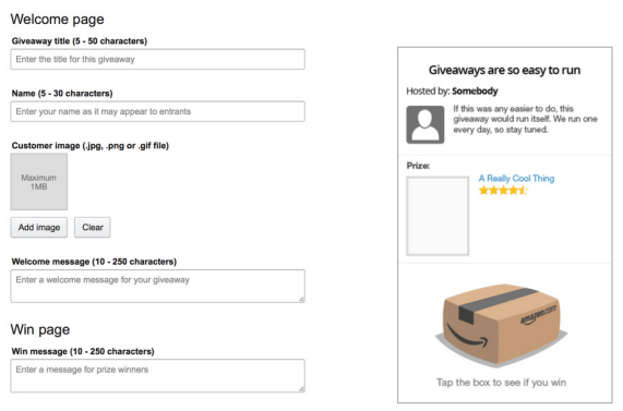 6. 设置完成后,您会收到一封电子邮件,其中包含有关如何选择参与者的指导。您也可以选择“公开我的奖品”,这样您的奖品就会在“今日抽奖”等面向亚马逊买家的计划中公开。