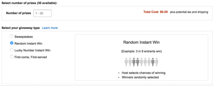 3. 选择您的商品并点击“设置抽奖”。您将再次来到“设置您的抽奖”页面。