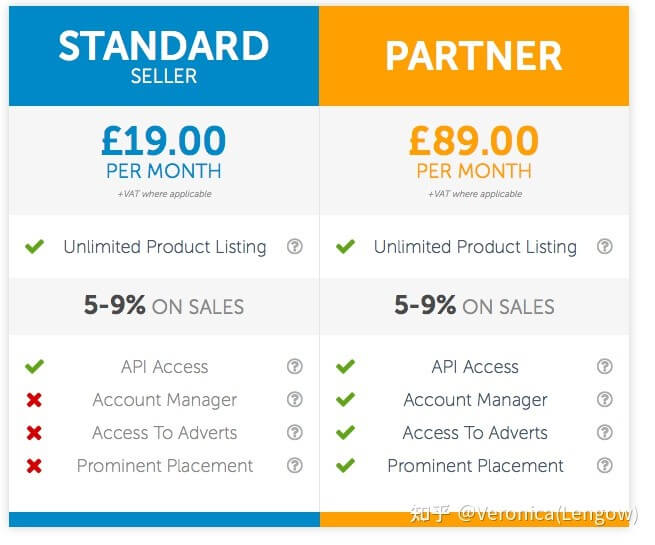 月租:Standard卖家月租金19英镑,Partner卖家月租89英镑/月;