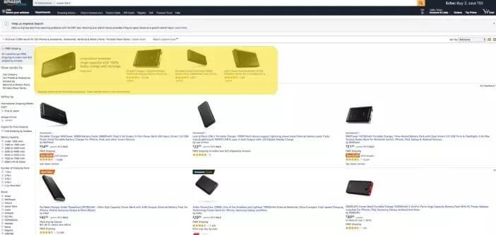 下图中黄色高亮部分是关键词“Power Bank”的头条搜索广告展示,位置优越,这是极好的流量获得入口。