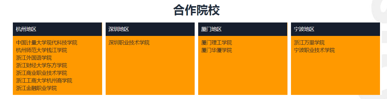 目前在杭州、深圳、厦门、宁波地区有合作院校