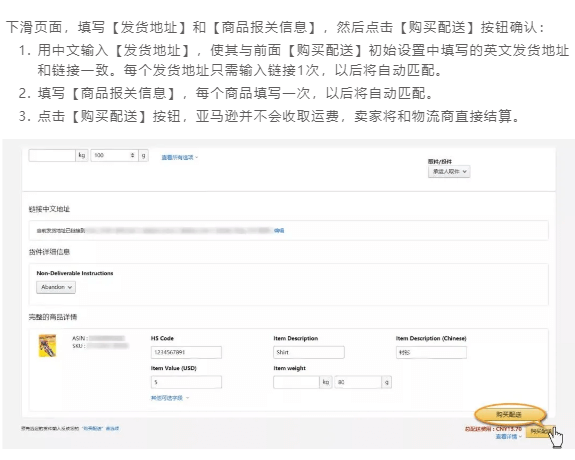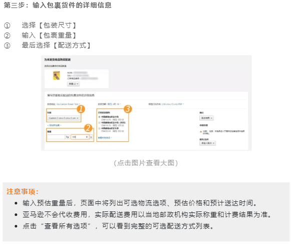 使用“购买配送”时,卖家平台会根据你填写的包裹重量信息和承运人,提供参考报价计算出的预估费用,不会直接向亚马逊账户收取该预估费。