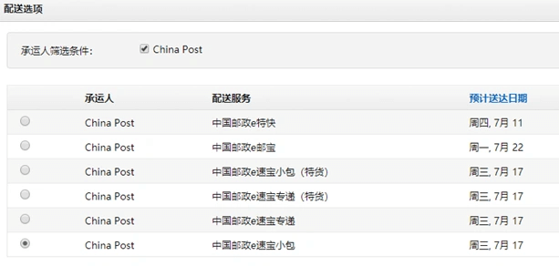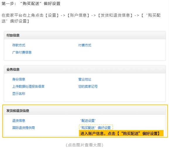 在“购买配送”时,对买家承诺的配送时效、你的承运人首选项和最低可用费用,亚马逊会自动匹配不同的配送服务,卖家根据自身情况选择。