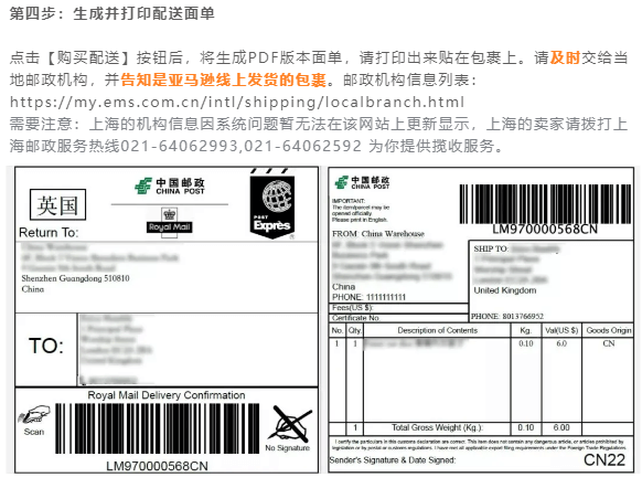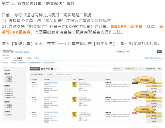 购买配送”是亚马逊针对卖家自配送订单的线上发货服务。卖家可以在卖家平台向合作的配送商购买配送服务,打印好标签,也可以使用“购买配送”服务API对接ERP。