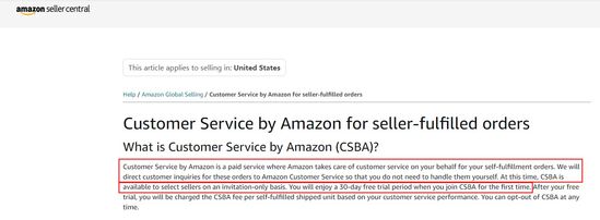 该服务于去年被提出,但近日才开始试行。该服务将通过电话、即时消息和电子邮件的形式为买家提供24小时的客服服务。卖家订阅此服务后,其客户对订单的查询将转至亚马逊客户服务部,卖家无需再自行处理。因货物运送以亚马逊平台作为中介,亚马逊为买家所提供的信息将更准确、及时。