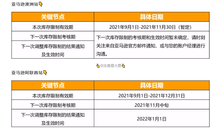 亚马逊澳洲站、阿联酋站正式开始实行库存仓储限制,于2021年9月1日生效。