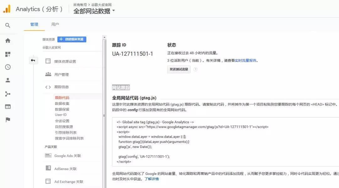 5.在网站安装谷歌分析代码,代码需要在网站的每个用户可以访问的页面出现。并且添加到<head> gtag.js</head>之间。