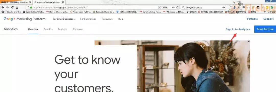 https://marketingplatform.google.com/about/analytics/.点击Sign in to Analytics .