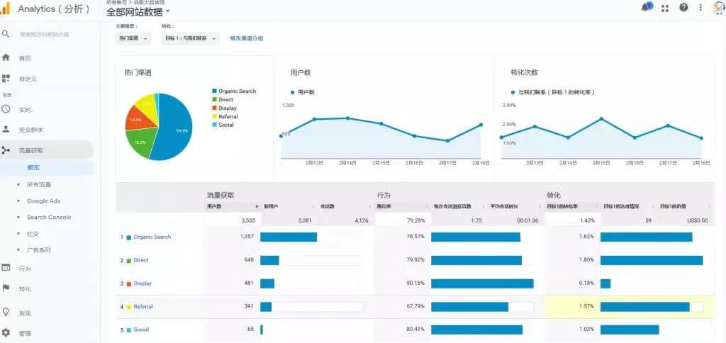 独立站到底哪些渠道是主要的流量来源,如何产生转化率,检测每一个渠道流量的状况,可以看到广告关键词效果,我们通常是通过流量的停留时间和转化率,判断关键词和登录页的体验是否最佳!