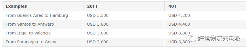 与此同时,这家法国航运公司还将从 10 月 1 日起将每个集装箱从南美东海岸到所有北欧和地中海目的地的 FAK 费率提高 1,500 美元,形成以下新价格: