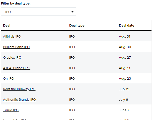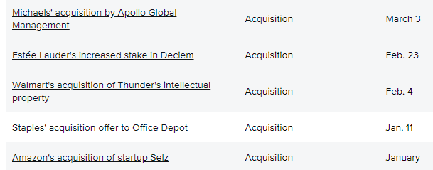 现在,进入2021年,我们也将继续关注和跟踪合并、收购、IPO和其他交易。以下是迄今为止主要交易的运行清单: