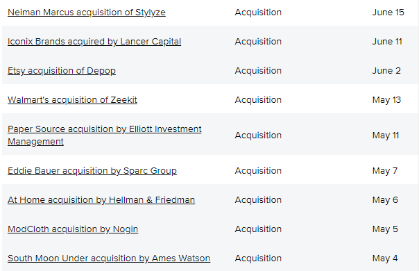 近日,零售电商风险投资公司抢购了破产零售商的知识产权,包括Pier 1、Modell's和Stein Mart。除此之外,VF公司(Vans、The North Face和Timberland的所有者)以21亿美元的价格收购了广受好评的潮牌Supreme。其中,也有几家公司上市,包括DTC宠儿Casper、转售平台Poshmark和宠物专业零售商Petco。