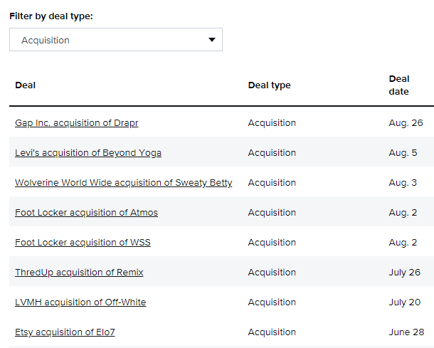 伴随着新冠疫情对行业的冲击,也出现了一些交易终止的问题。私募股权公司Sycamore Partners原定以5.25亿美元的价格收购L Brands旗下的维多利亚的秘密,但经过数周的法庭辩论,两家公司于5月宣布终止收购计划。除此之外,J.Crew和Gap Inc.也宣布打算拆分其Madewell和Old Navy品牌,但最终却放弃了该计划。