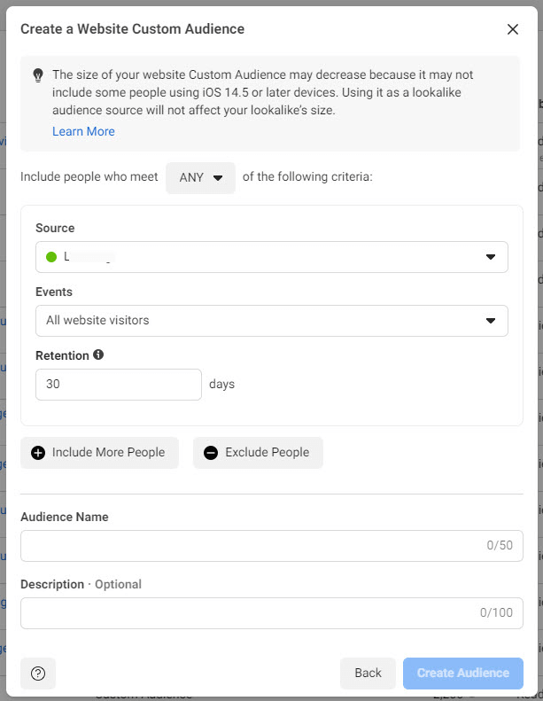 不同广告平台上构建自定义目标群体也会不同,但在大多数广告平台上,它几乎是自动的,因此应该不成问题。