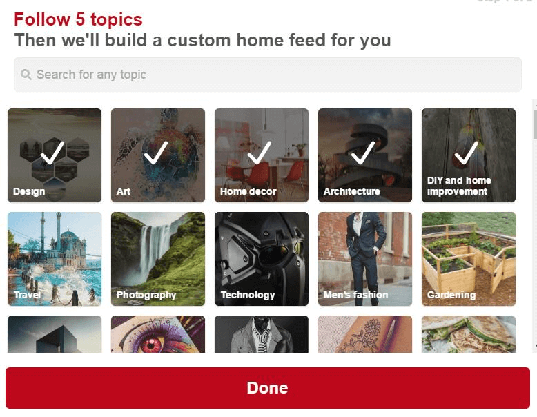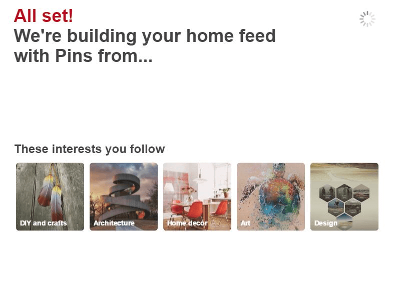 9、点击跳过以后,你就会自动到了pinterest后台首页了。