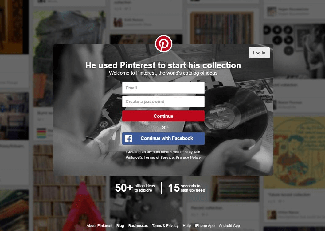 请注意,注册Pinterest需要符合以下两个条件: