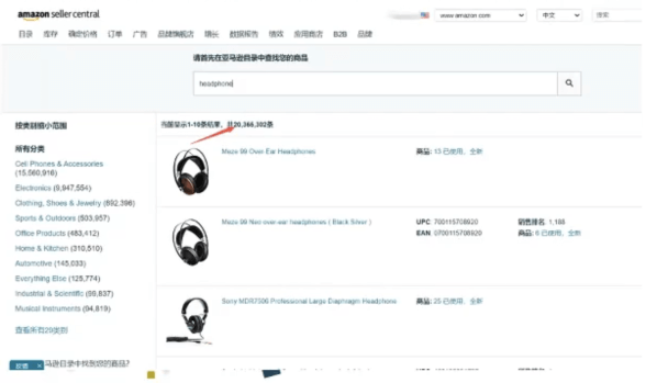 2. 利用亚马逊后台,添加商品--搜索产品,搜索出来的数量会显示所有变体。