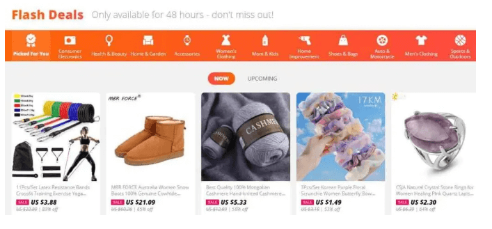 速卖通flash deal:这其实相当于速买通的天天特价频道,里面有各类产品,我们可以很快的进行浏览,选择自己感兴趣的产品。