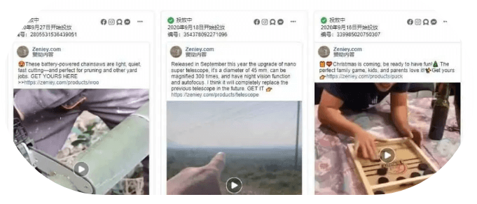 接着用FB广告资料库,就可以查询出所有正在跑的广告了:根据跑的广告时间长短,投放的国家规模,基本就可以知道这个产品是不是有利可图了。