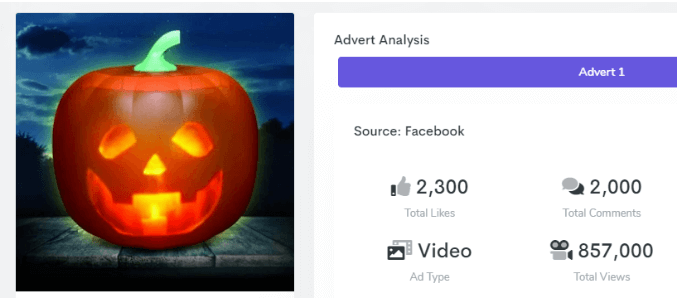 例如,我用dropship-spy这款工具查询到这款南瓜灯,估计是因为马上万圣节了,然后找出它的FB主页。