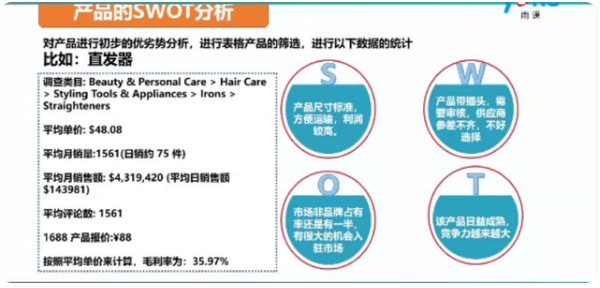 接下来就是我们要对产品去进行一个SWOP分析,例如它的优势在哪一个地方,劣势又在哪一个地方,机遇与挑战又是哪些?比如说以下面这款直发器座SWOP分析: