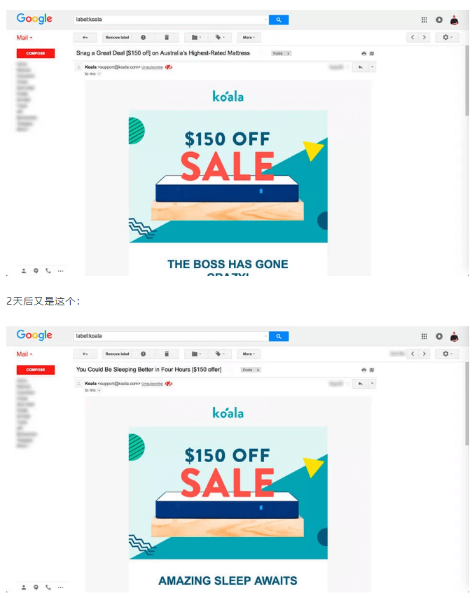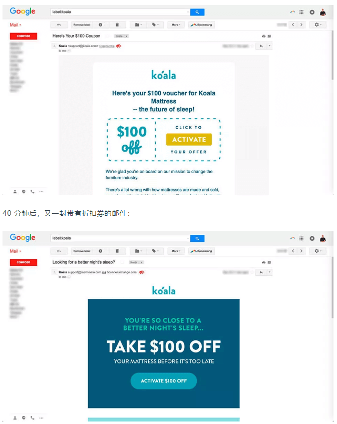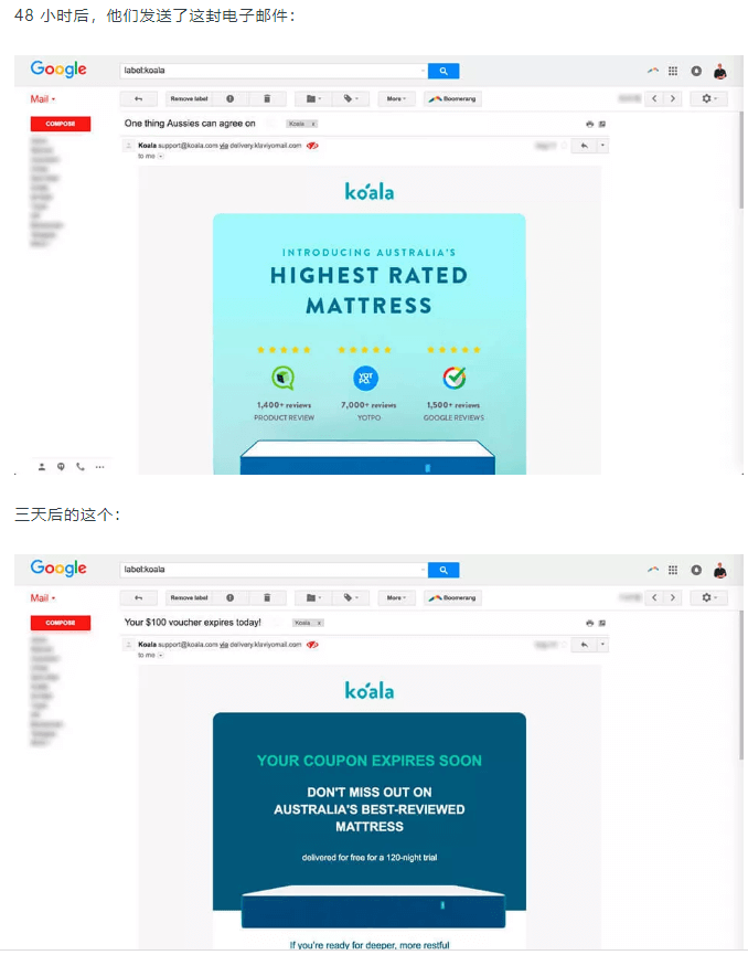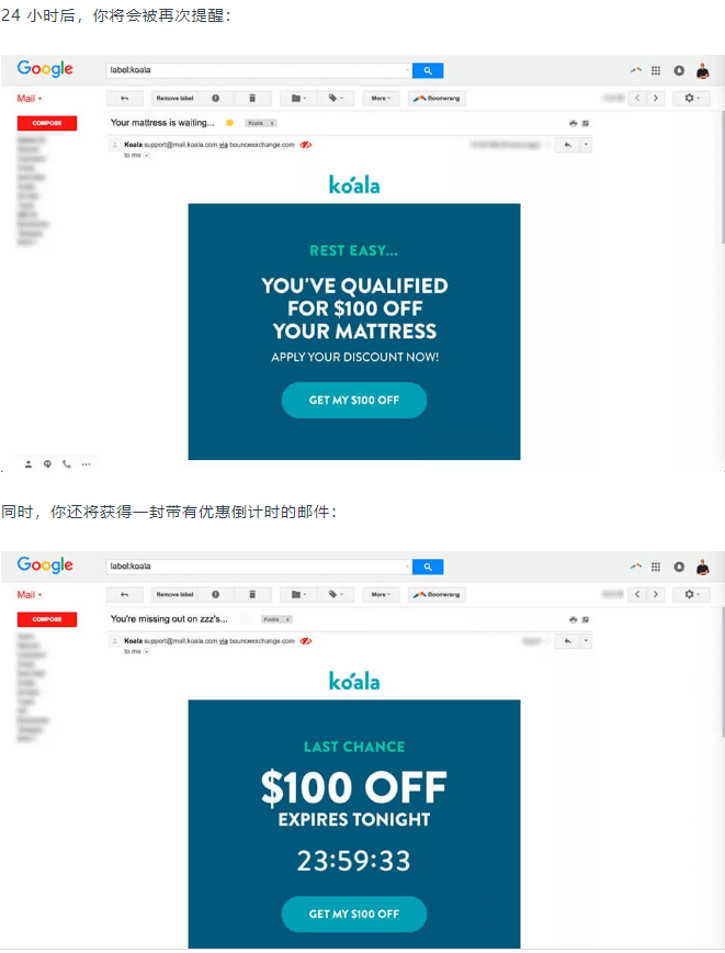 但是当你产生购买意愿,在Koala的品牌店铺输入自己的电子邮件以获取折扣券时,将会看到他们是如何将邮件营销玩到极致的。