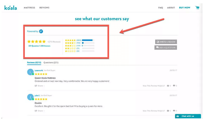 拥有出色的产品当然很重要,但如何让消费者感知到你的产品有多出色则更重要。Koala非常热衷于让客户在购买后在线发表评论,并在所有的营销活动中使用这些正面评价。